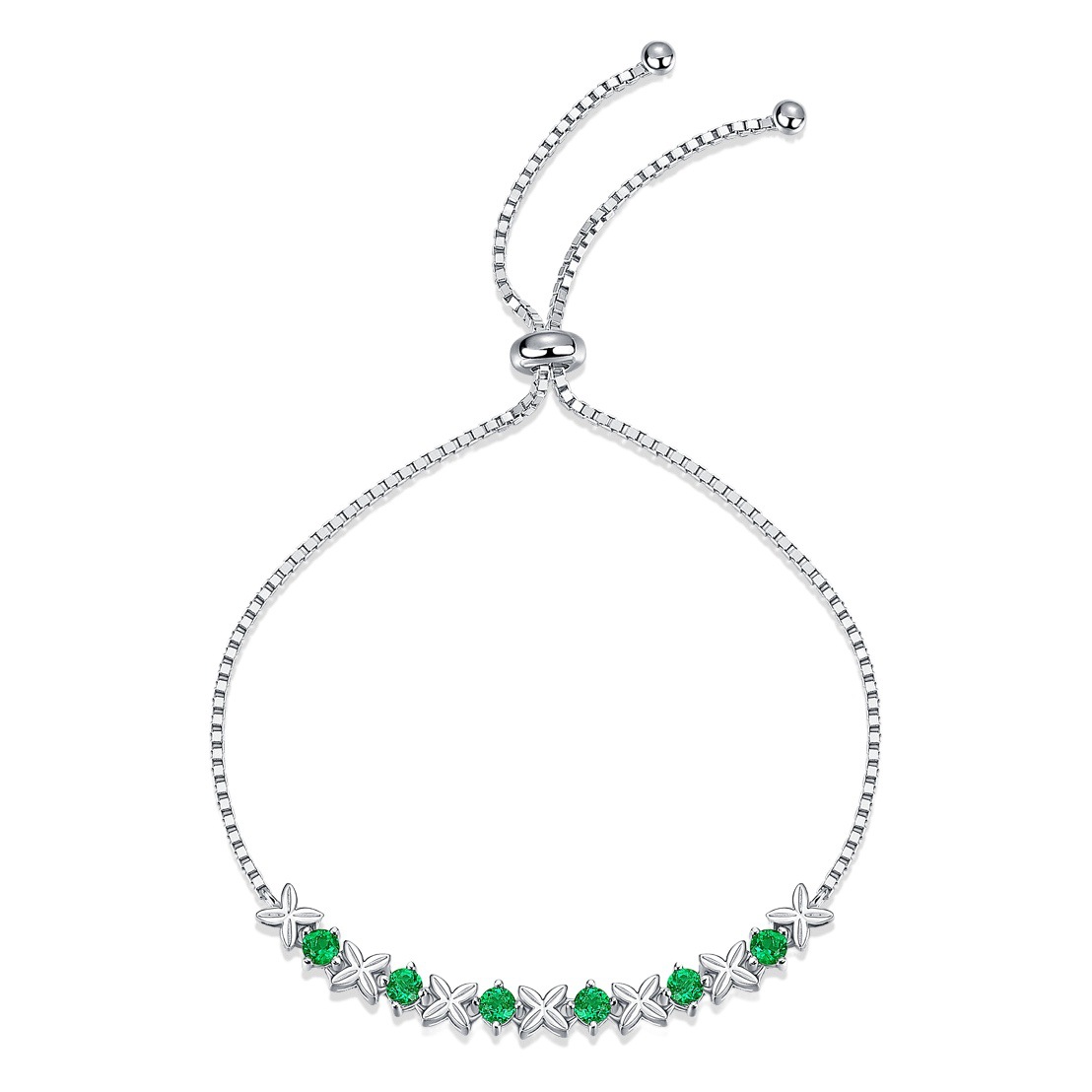 This is a fashion bracelets designed for women. Made of 925 silver with CZ emerald, it features an emerald styling. Electroplated finish ensures long-lasting shine. Perfect for private label branding.