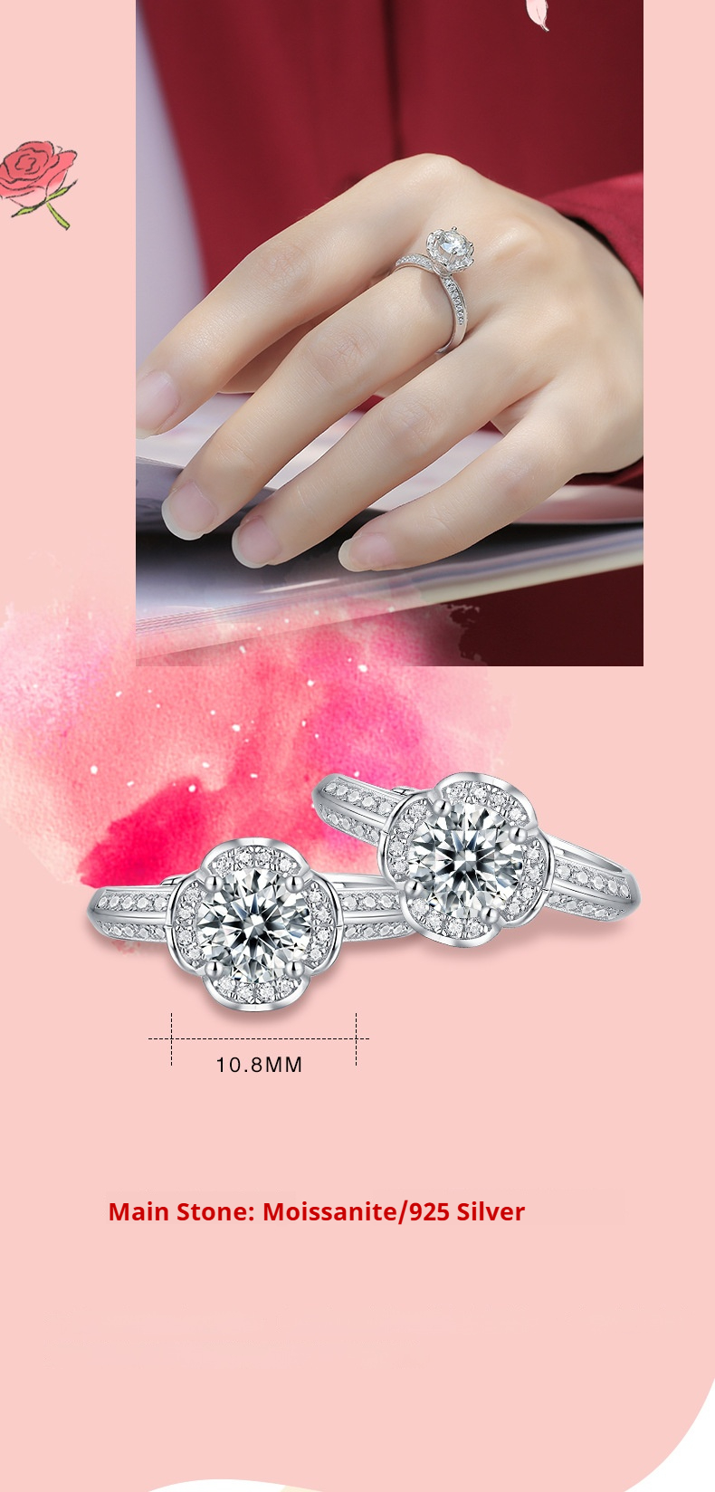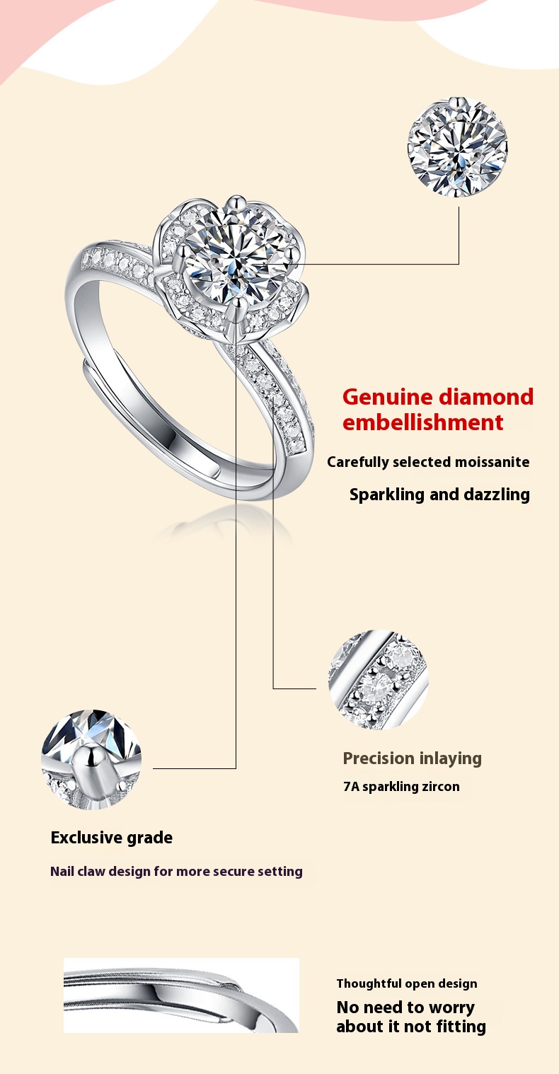 S925 Silver Mosan Diamond Ring for Women: S925 Silver Mosan Diamond Ring for Women