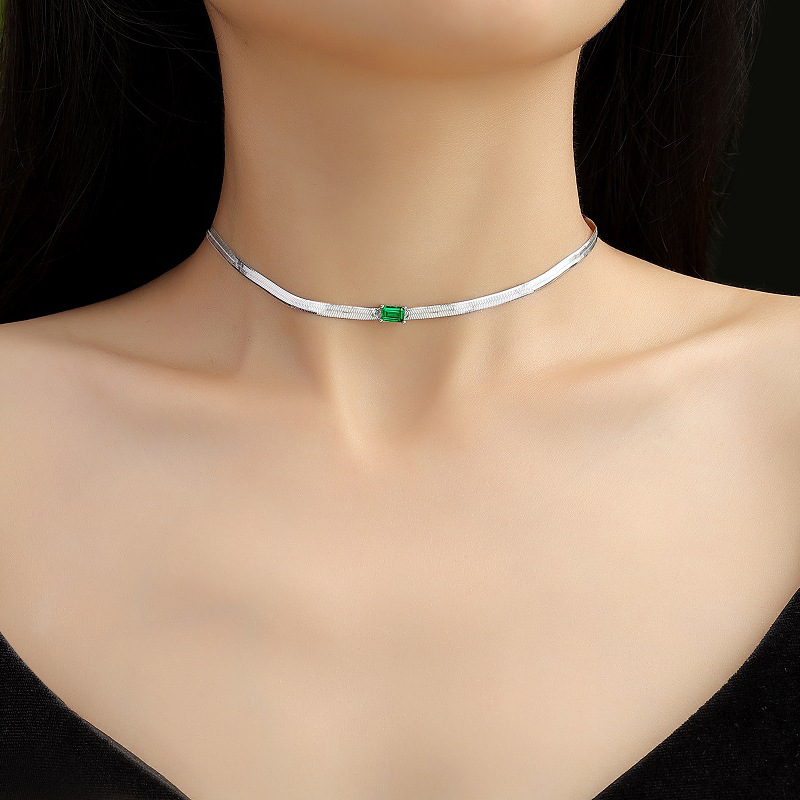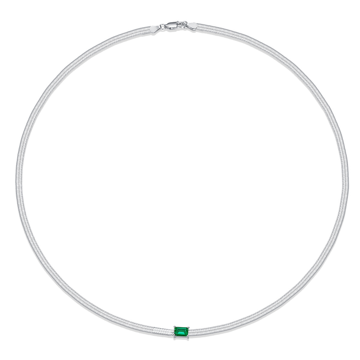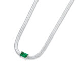 925 Sterling Silver Emerald CZ Snake Chain Necklace