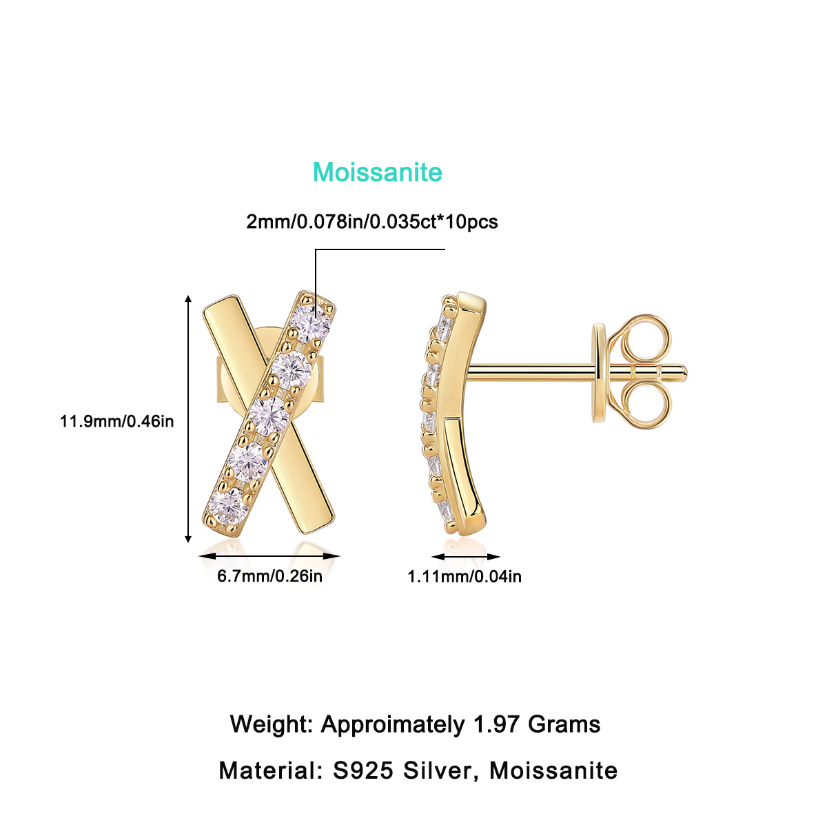 Moissanite eye 5*10mm: Moissanite octagonal 6*8mm
