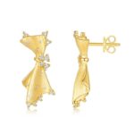 Italian Vintage Brushed Art-Style Small Skirt Earrings – Moissanite in Silver