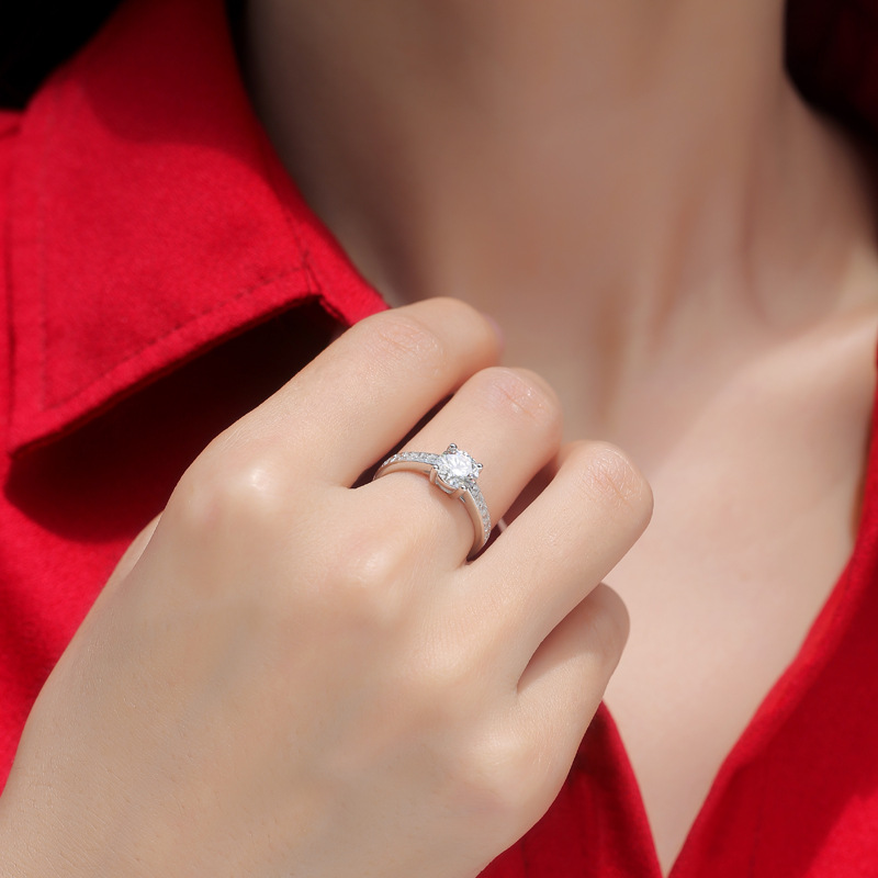 S925 Silver Mosan Diamond Ring for Women: S925 Silver Mosan Diamond Ring for Women