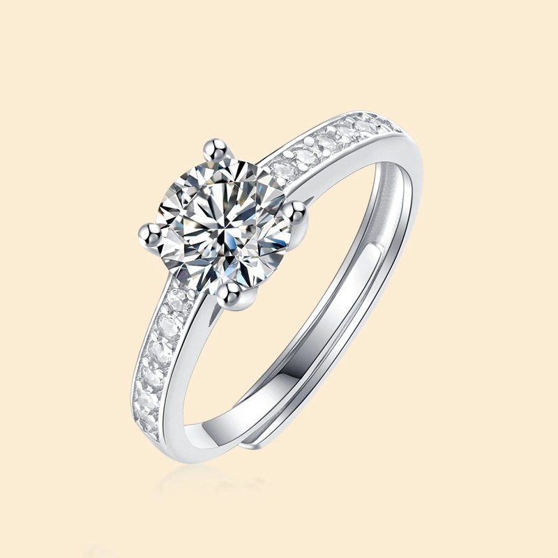 Live hot simple temperament 925 silver ring trend moissanite live adjustable finger ring