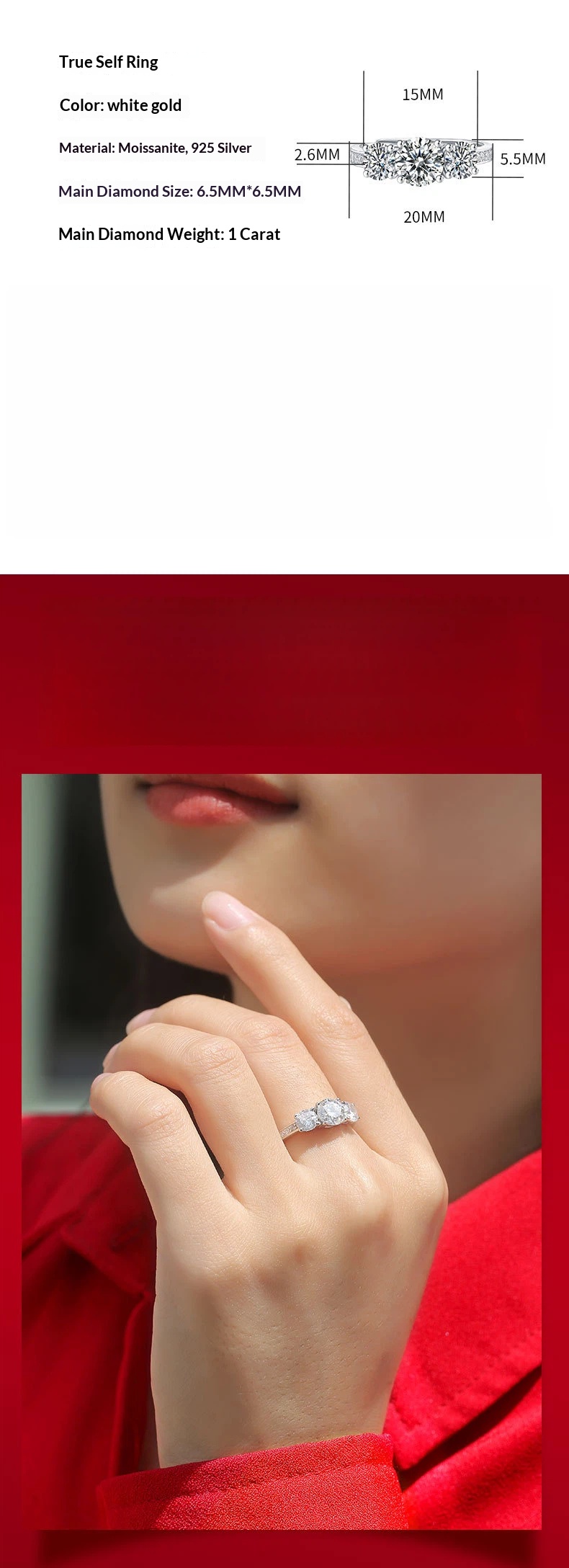 Material: 925 Silver + Moissanite diamond+Cubic zirconia