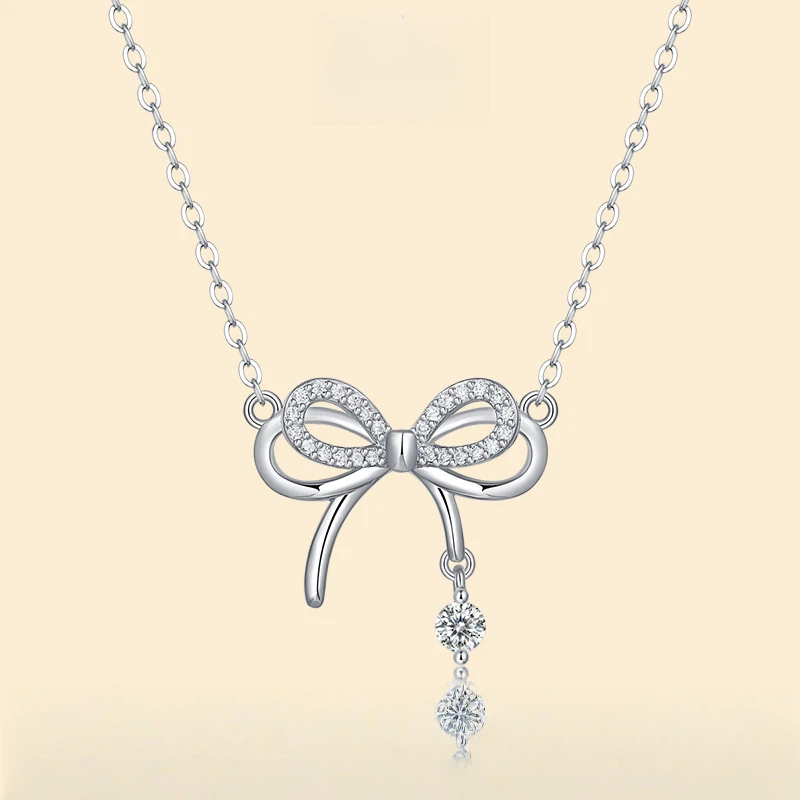 Korean Style Simple Elegant Heart-Shaped Pendant Necklace No Falling Women’s S925 Silver Versatile Moissanite Clavicle Chain