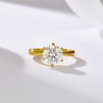 S925 Sterling Silver Six-Prong Moissanite Ring for Women – Gold Tone