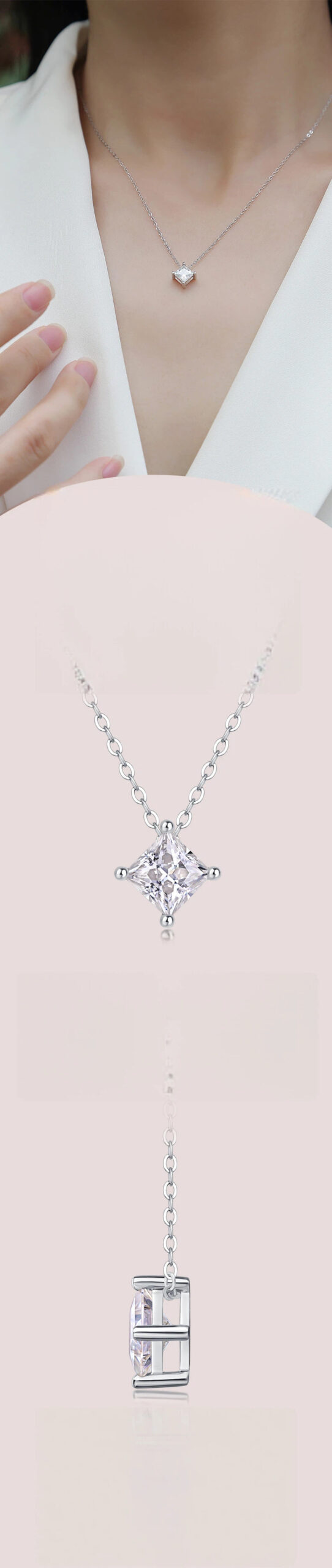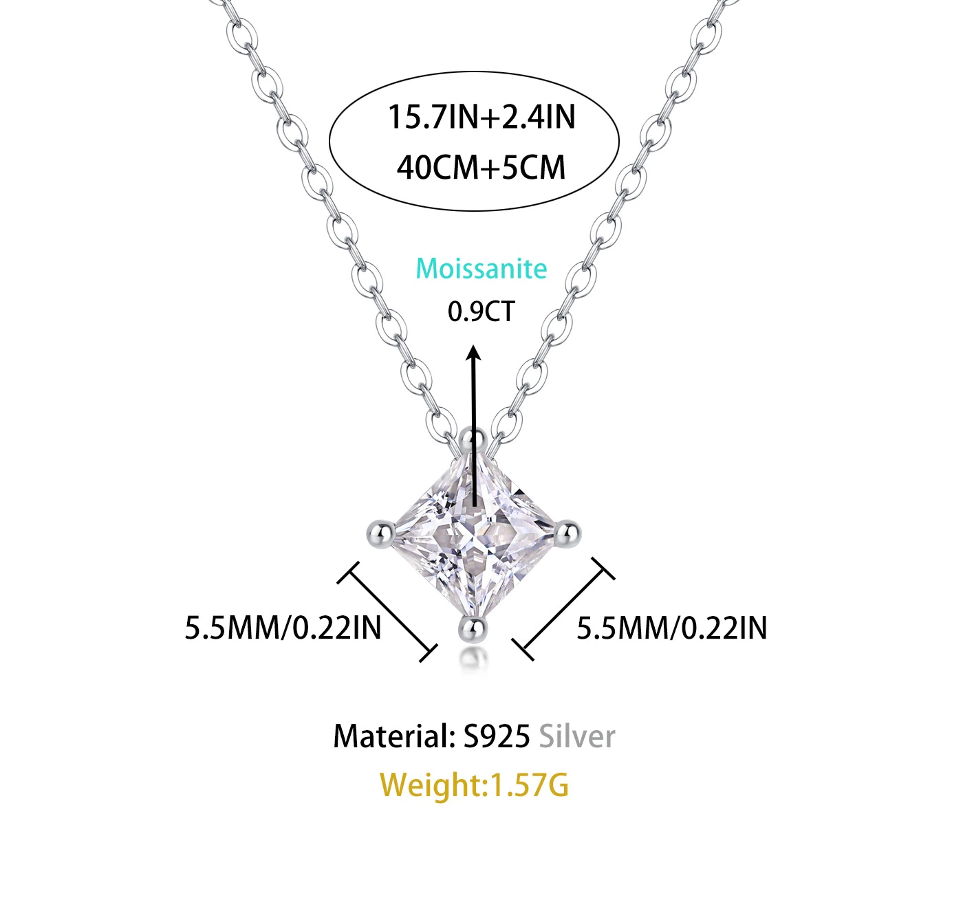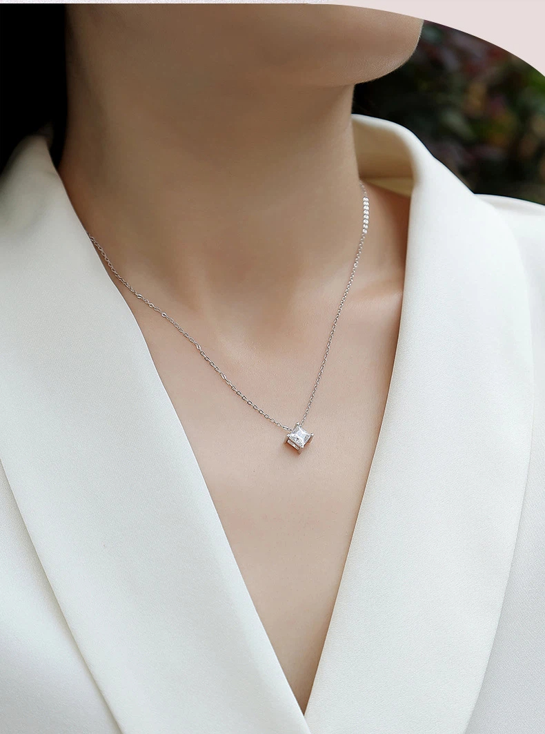 S925银四爪吊坠锁骨链长款叠戴方形莫桑石简约高级感配饰女项链