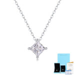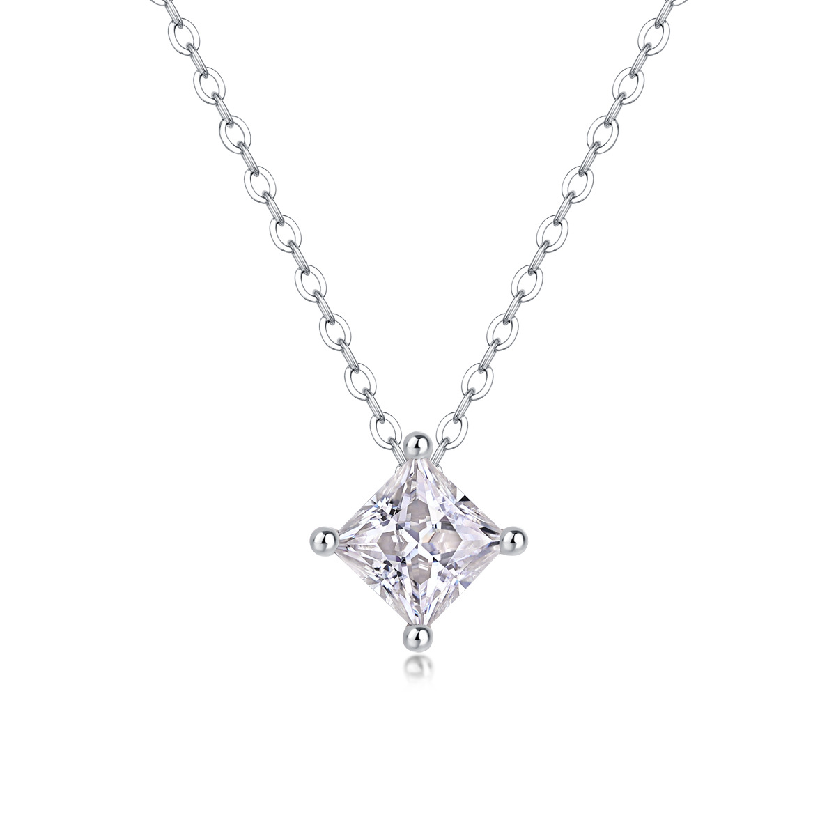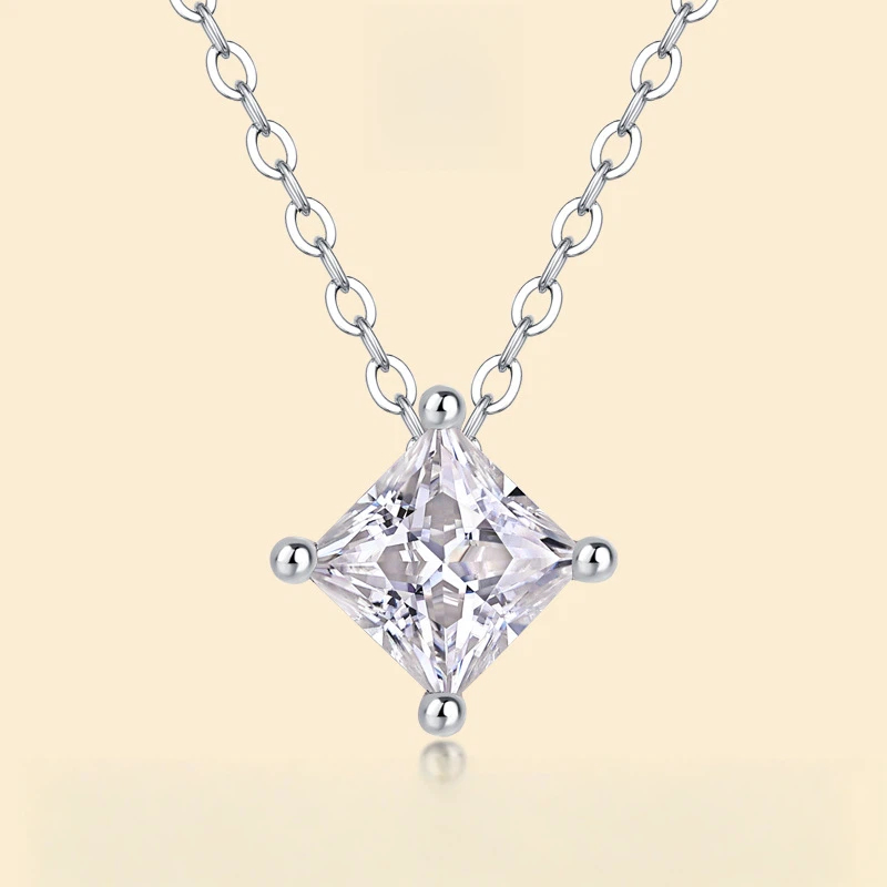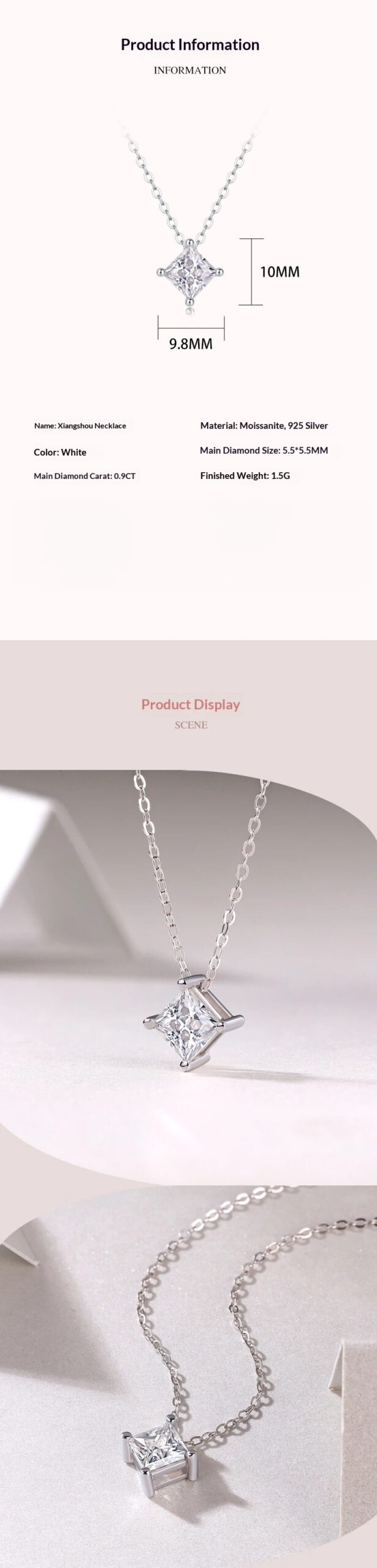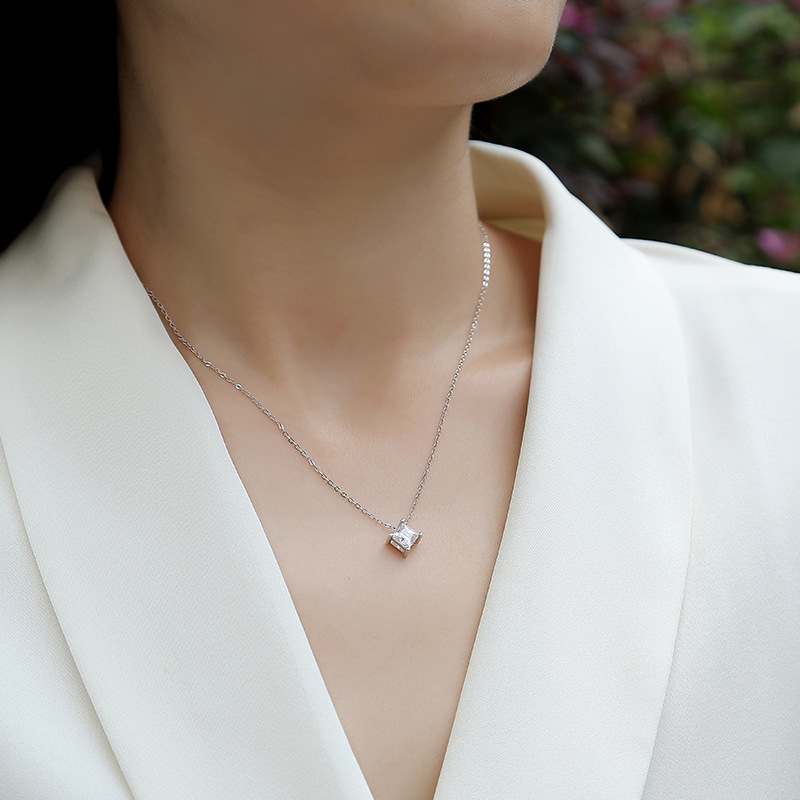 S925银四爪吊坠锁骨链长款叠戴方形莫桑石简约高级感配饰女项链