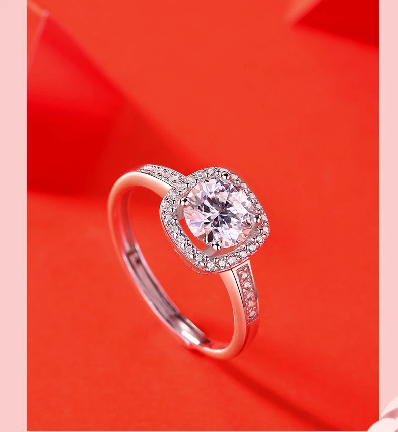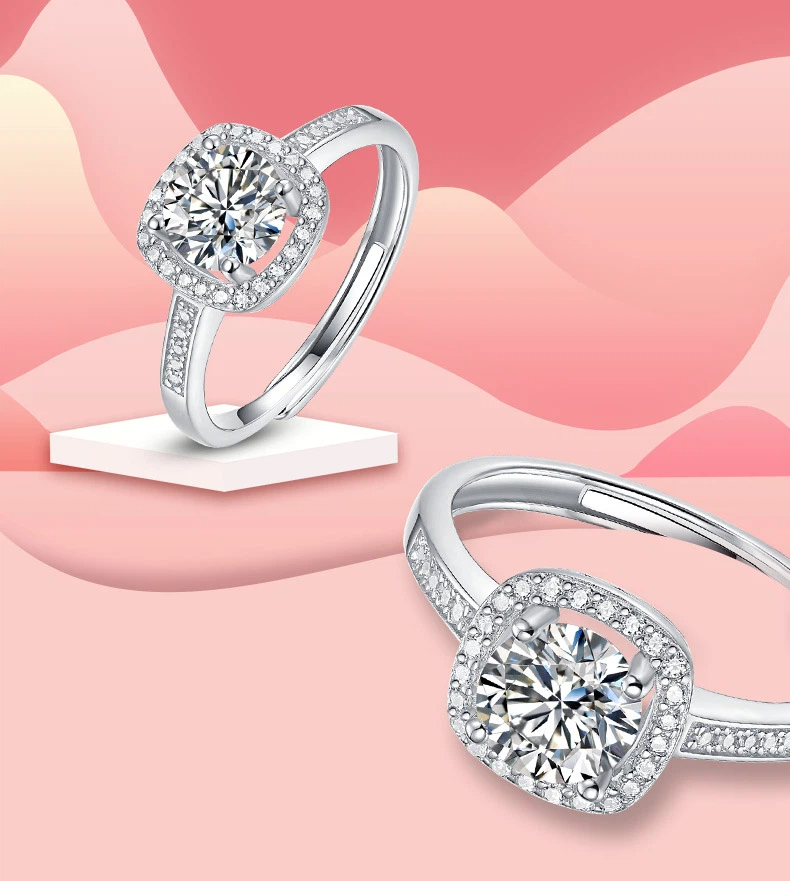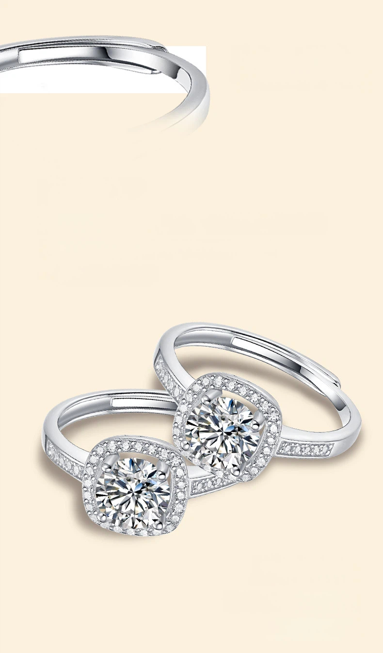 S925 Sterling Silver Square Moissanite Ring