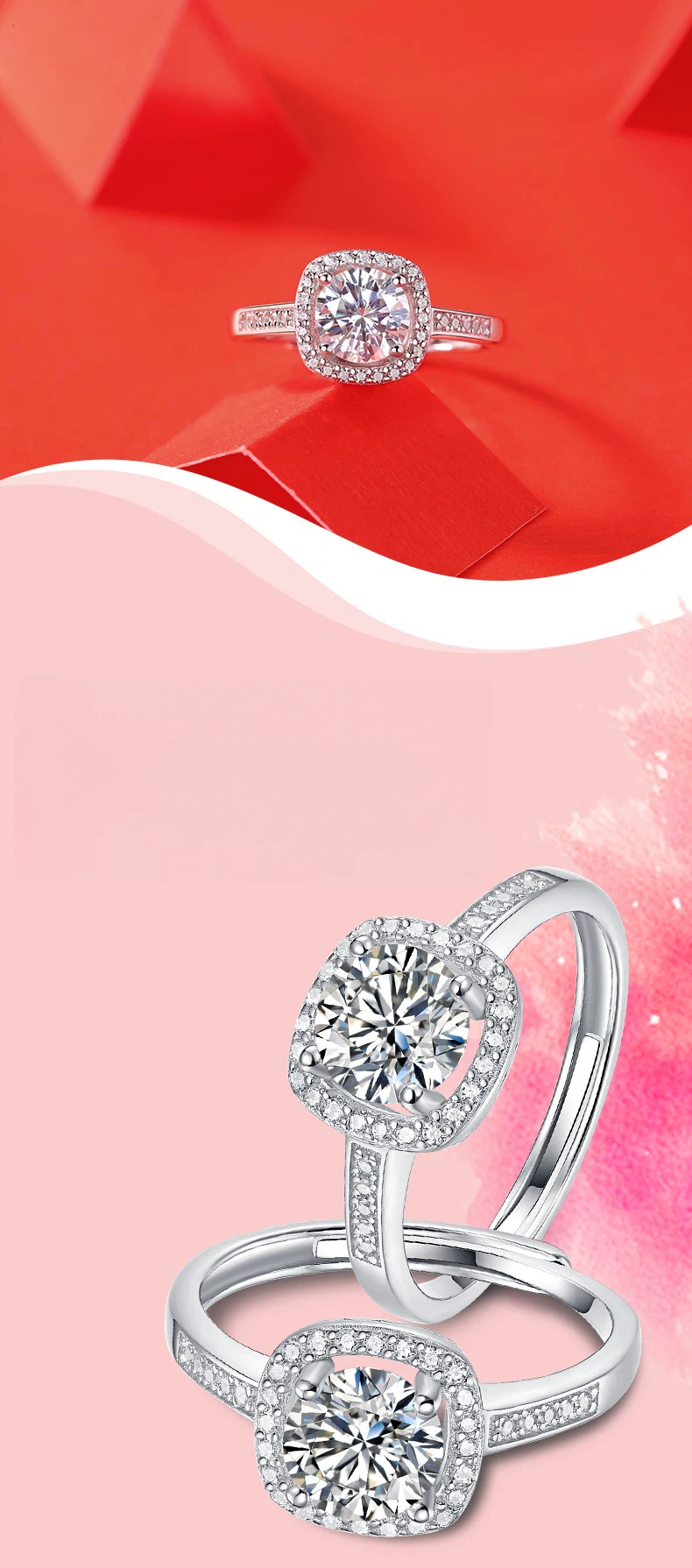 Material: 925 Silver + Moissanite diamond+Cubic zirconia