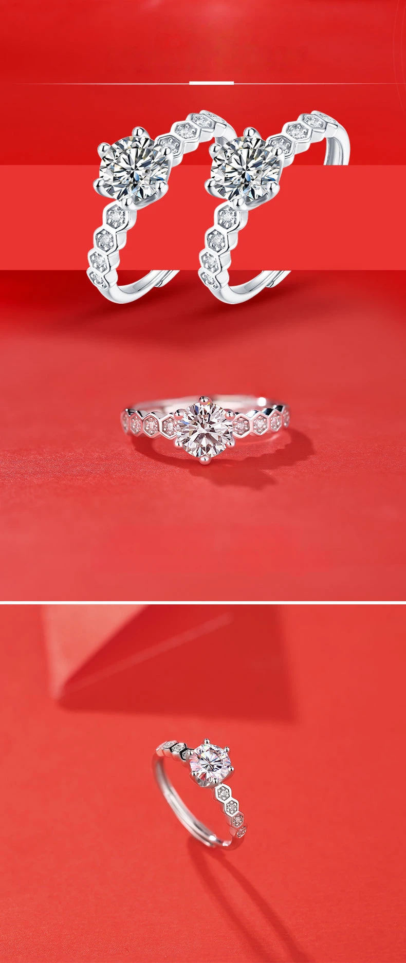 S925 silver Cold extraction Moonlight ring moissanite luxury inlaid closed ring cross-border Amazon hot sale New Wholesale