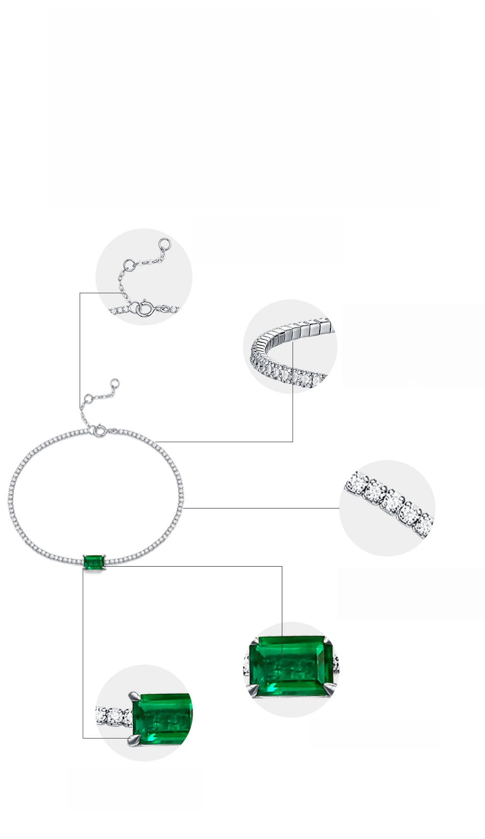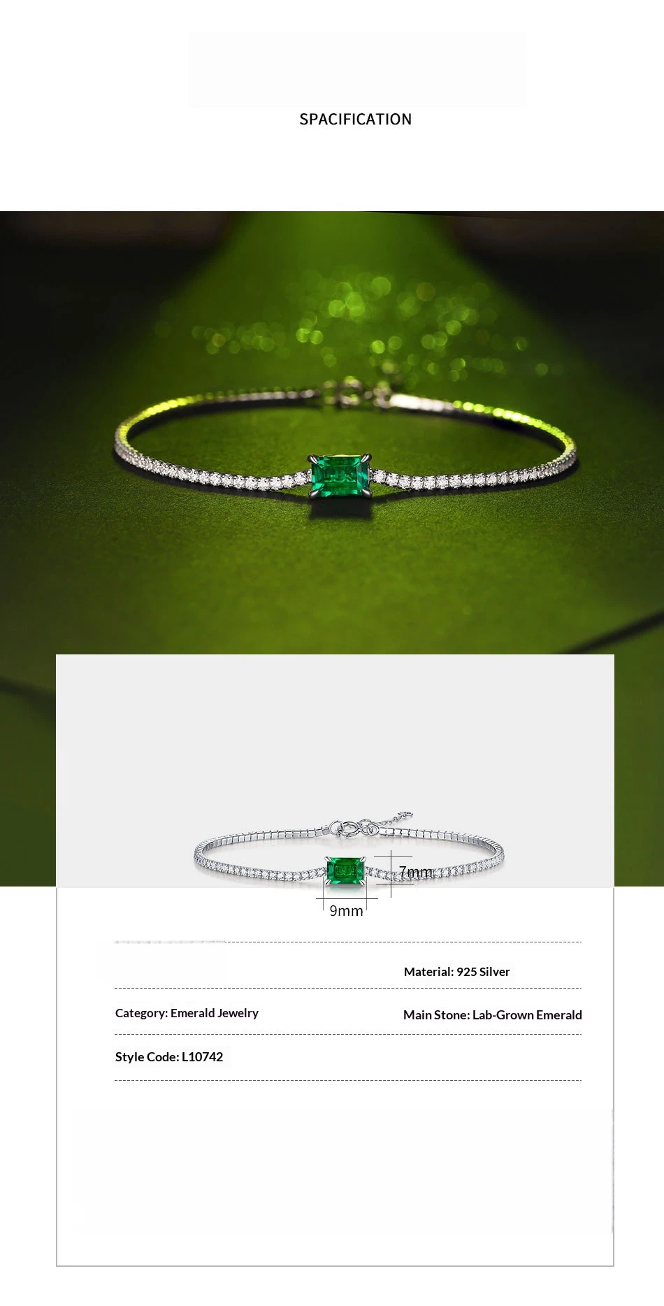 This is a fashion bracelets designed for women. Made of 925 silver with CZ emerald, it features an emerald styling. Electroplated finish ensures long-lasting shine. Perfect for private label branding.